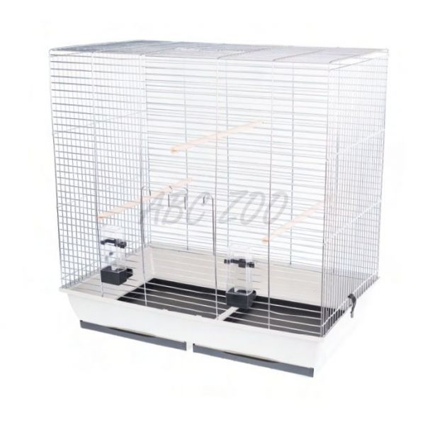 Duża klatka przeznaczona dla średnich i dużych papug. Jasnoszary kolor wanienki. Szczegółowy opis