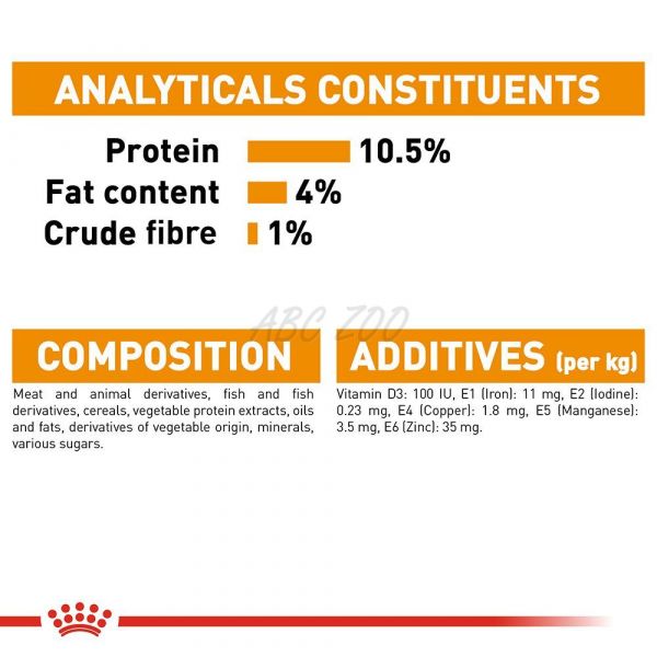Skład pasztetu dla kotów w galaretce również pomaga utrzymać idealną wagę. Zawiera tylko 3,7% tłuszczu, co zapobiega przybieraniu na wadze, oraz optymalną ilość białka, dzięki któremu mięśnie prawidłowo się rozwijają i rosną. Również utrzymuje zdrowe drogi moczowe i prawidłowe funkcjonowanie pęcherza moczowego. Wśród innych składników odżywczych w składzie tej karmy znajdują się ryby i mięso, które zapewniają dobrą smakowitość, a także wiele roślinnych pochodnych dostarczających witamin i minerałów, które odżywiają skórę i sierść.