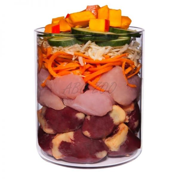 Ilość mięsa : warzywa/owoc/zioła : inne składniki = 64% : 33% : 3%