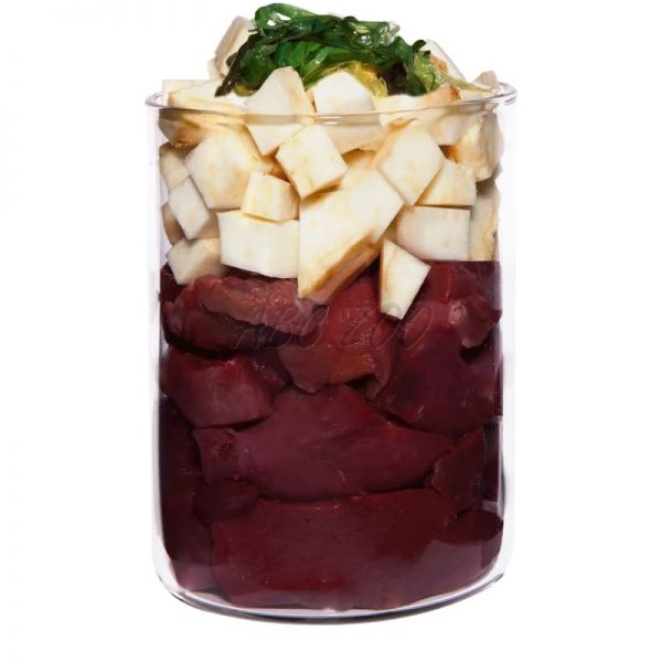 Karmy w puszkach Terra Canis z linii HYPOALLERGENIC zawierają czyste mięso mięśniowe (60%) z jednego egzotycznego źródła białka, uzupełnione niskoalergicznymi warzywami. Wszystkie składniki są w 100% przeznaczone dla ludzi. Odpowiednia dla psów z alergiami/nietolerancjami pokarmowymi oraz do stosowania diety eliminacyjnej.