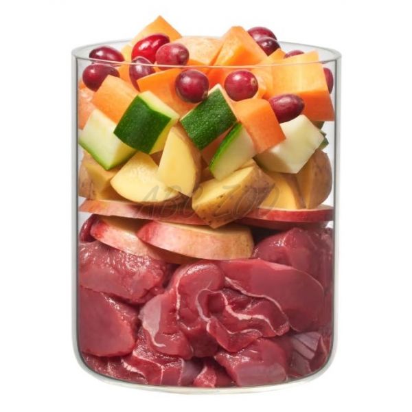 Składniki: Mięso chude z antylopy (50%), marchew, cukinia, ziemniak (11%), gruszka (4%), olej rzepakowy, ogórek, mąka kokosowa*, mąka kasztanowa* (1%), żurawina, drożdże piwne*, muszle ostryg*, rumianek* (0,2%), owoc dzikiej róży*, ziemia okrzemkowa*, szałwia*, kminek*, kminek*, glinka montmorylonitowa, wodorosty*, składniki mineralne