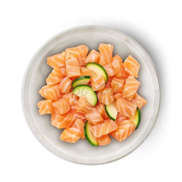 Składniki: Łosoś 54%, bulion 38%, cukinia 3%, glicyna 2%, muszle ostryg 1%*, proszek pomidorowy*, szpinak*, tauryna, drożdże piwne*, minerały*