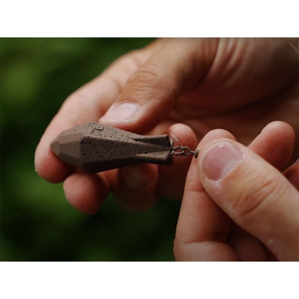 Powierzchnia ciężarka ma naturalne brązowe odcienie z czarnymi plamkami, co doskonale kamufluje go na dnie. Powiększone oczko na kręgu pozwala na szybkie i łatwe mocowanie do uchwytu.