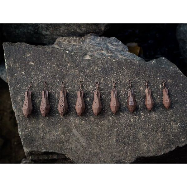 Powierzchnia ciężarka ma naturalne brązowe odcienie z czarnymi plamkami, co doskonale kamufluje go na dnie. Powiększone oczko na kręgu pozwala na szybkie i łatwe mocowanie do uchwytu.