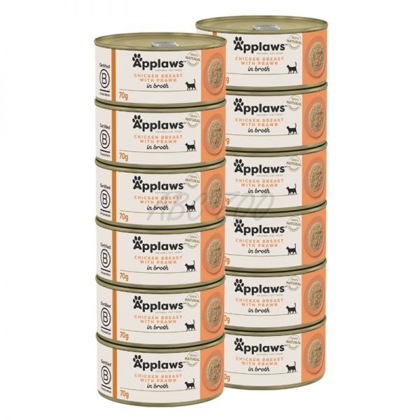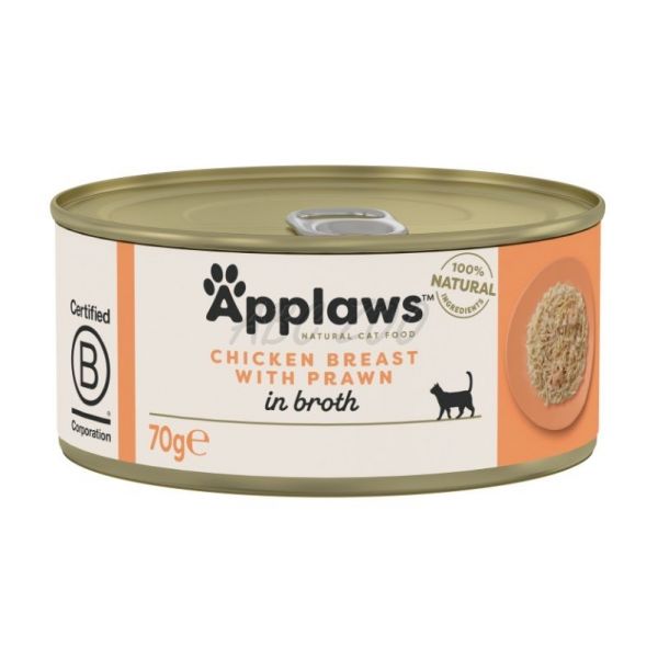 Applaws Konserwa dla kotów z piersią kurczaka i krewetkami w bulionie 12 x 70 g