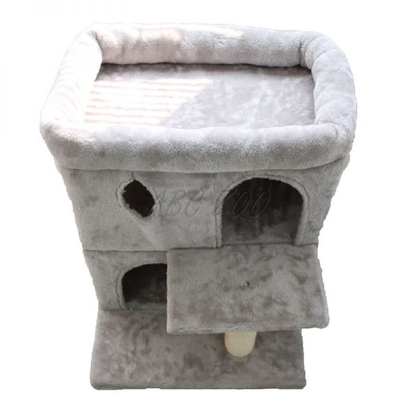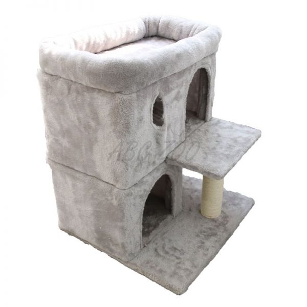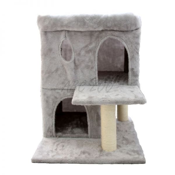 Ten przestronny drapak oferuje dwa zamknięte poziomy do leżenia lub chowania się, a także górną podwyższoną platformę z miękkim wykończeniem, która służy jako punkt widokowy lub wygodne legowisko. Solidne słupki z sizalu zapewniają miejsce do naturalnego ścierania pazurów, chroniąc meble przed zarysowaniami. Dzięki stabilnej podstawie i wysokiej jakości pluszowi, ten mebel stanowi idealne miejsce do zabawy, odpoczynku i obserwacji otoczenia.