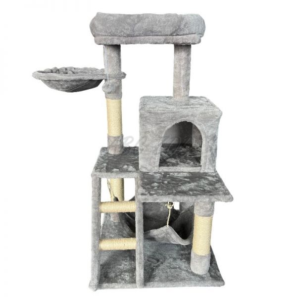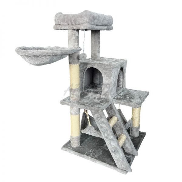 Ten drapak oferuje Twojemu kotu wszystko, czego potrzebuje do aktywnej zabawy i spokojnego odpoczynku. Zawiera stabilną podstawę z solidnym domkiem, podwyższoną platformą, wygodnym legowiskiem oraz miękkim posłaniem na najwyższym poziomie. Dodatki takie jak lina, hamak i drabinka wspierają ruch, wspinaczkę oraz zabawowe instynkty.