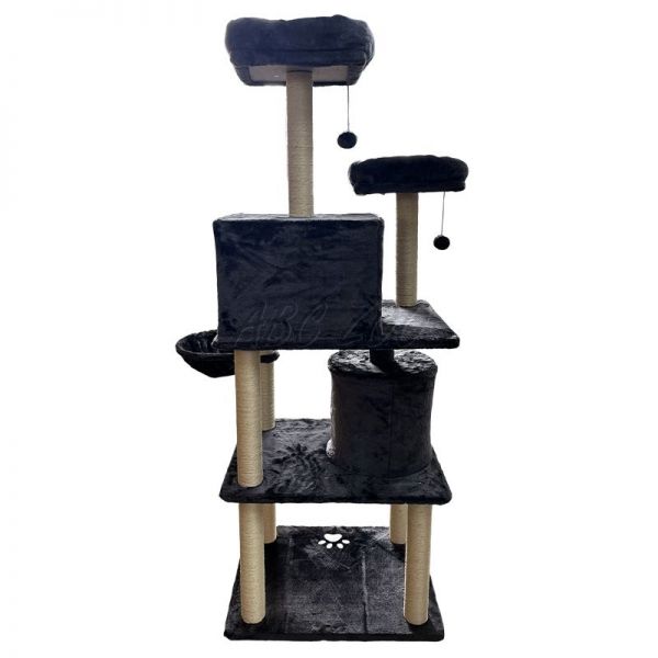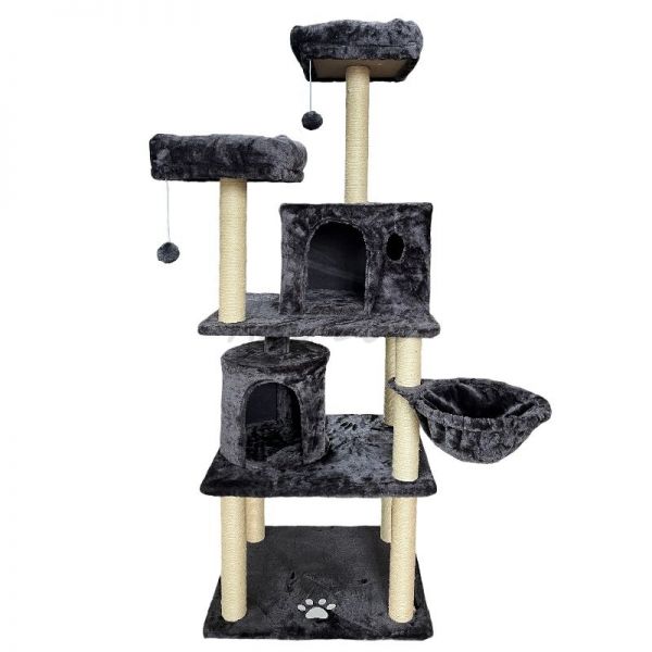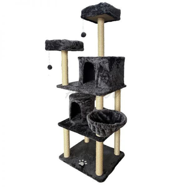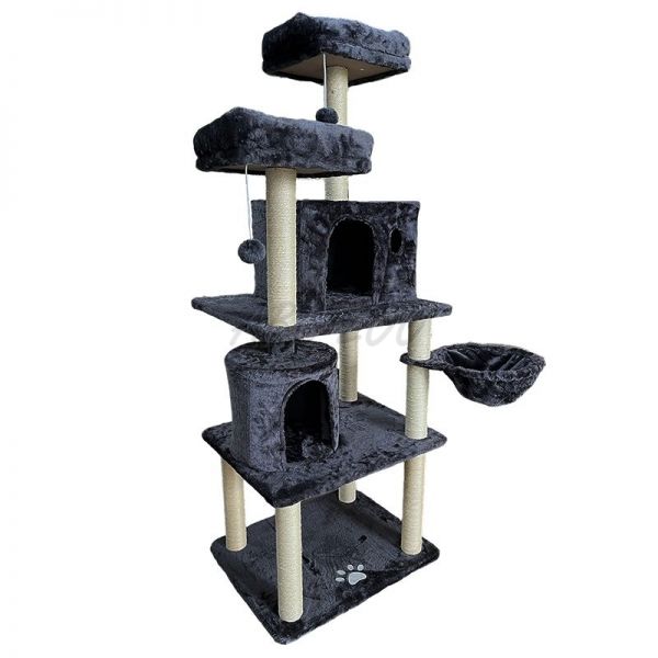 Ten drapak to doskonały wybór dla domów z wieloma kotami. Dzięki czterem poziomom i bogatemu wyposażeniu oferuje różnorodne możliwości aktywności – od słupków do drapania po domki i miejsca do odpoczynku. Miękka, pluszowa tapicerka oraz solidna konstrukcja gwarantują komfort i bezpieczeństwo dla każdego kota.