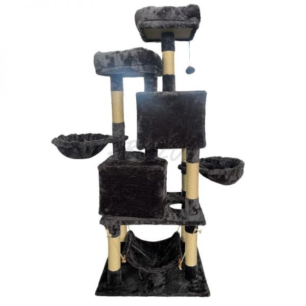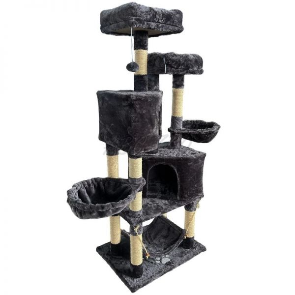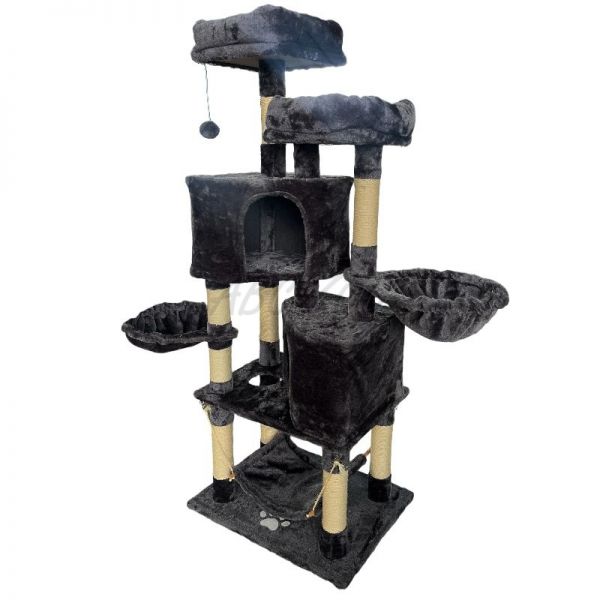 Ten wysoki drapak dla kotów oferuje połączenie miejsc do odpoczynku, domków i słupków do drapania, dzięki czemu Twój kot może w radosny sposób zaspokoić swoje instynkty. Dwie przestronne kryjówki zapewniają wystarczającą prywatność, podczas gdy podwyższone legowiska umożliwiają obserwację otoczenia z wysokości. Słupki sizalowe służą jako idealne miejsce do ostrzenia pazurów, chroniąc Twój mebel przed zarysowaniami.