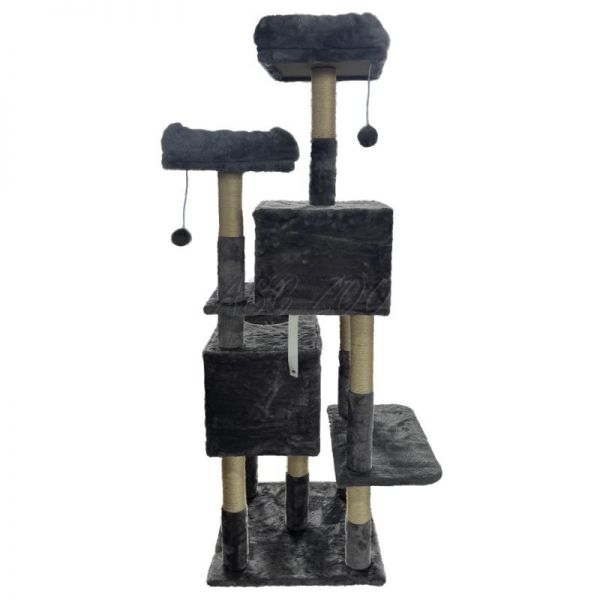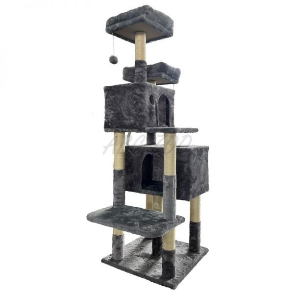Ten wysoki drapak dla kotów oferuje połączenie legowisk, domków i słupków do drapania, dzięki czemu Twój kot może w radosny sposób zaspokoić swoje instynkty. Dwie przestronne kryjówki zapewniają wystarczającą prywatność, podczas gdy podwyższone legowiska umożliwiają obserwację otoczenia z wysokości. Słupki sizalowe służą jako idealne miejsce do ostrzenia pazurów, chroniąc Twój mebel przed zarysowaniami.