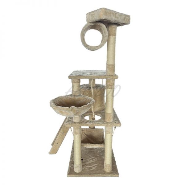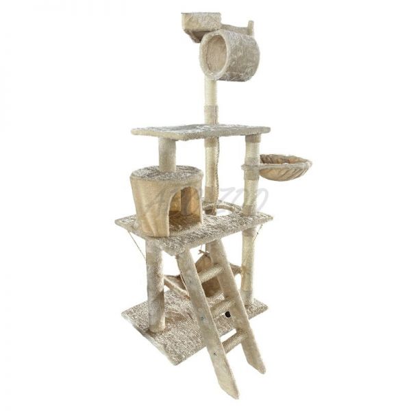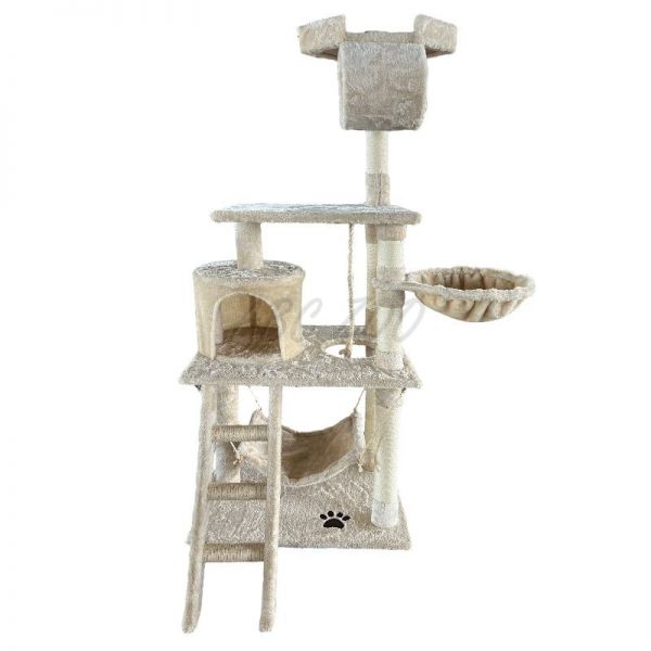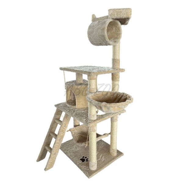 Ten wysoki i stabilny drapak jest idealny dla domów z jedną lub wieloma kotami, które potrzebują przestrzeni do aktywnego spędzania czasu oraz spokojnego schronienia. Oferuje kombinację różnych elementów, takich jak legowiska, punkty widokowe, tunel, huśtawka i drabinka, co zapewnia kotu maksymalny komfort i zabawę. Słupki z sizalu wspierają naturalny instynkt kotów do drapania, chroniąc Twój mebel przed uszkodzeniem.