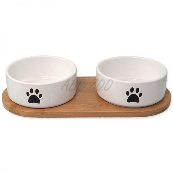 Dog Fantasy Zestaw ceramicznych misek z podstawką białe 2 x 400 ml