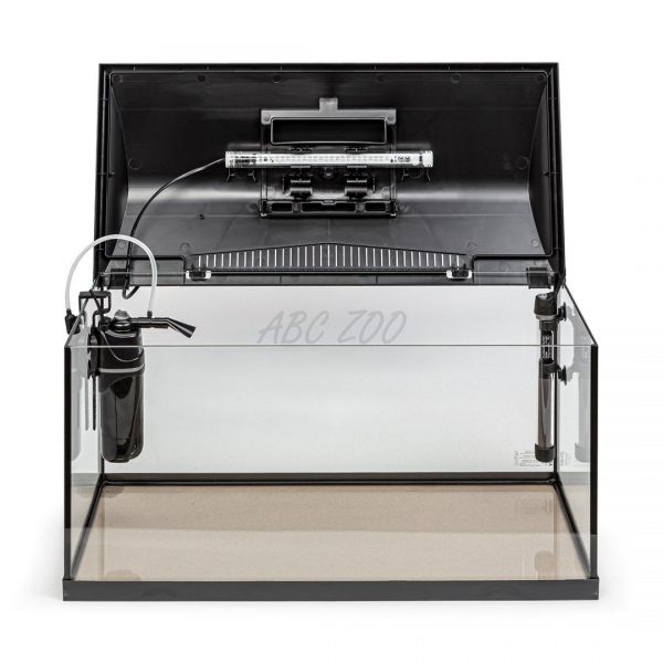 Dzięki opatentowanemu systemowi SMART OPEN możesz wygodnie przeprowadzać konserwację akwarium, ponieważ pokrywy nie trzeba podpierać podpórkami. Duża klapka umożliwia karmienie ryb bez zdejmowania lub odsuwania pokrywy.