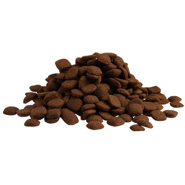 Składniki: mięso (świeże mięso /woda, wieprzowina, wołowina/ - 22,5 %, suszone mięso drobiowe 23 %, hydrolizowana wątroba wieprzowa 3,5 %), ryż, pszenica, tłuszcz drobiowy, kukurydza, skrawki cukru, hydrolizowane białka drobiowe, otręby pszenne, drożdże piwne, kiełki pszenicy, suszone wytłoki jabłkowe 2%, olej z łososia, glukozamina 0,15%, siarczan chondroityny 0,08%, korzeń cykorii 0,05%