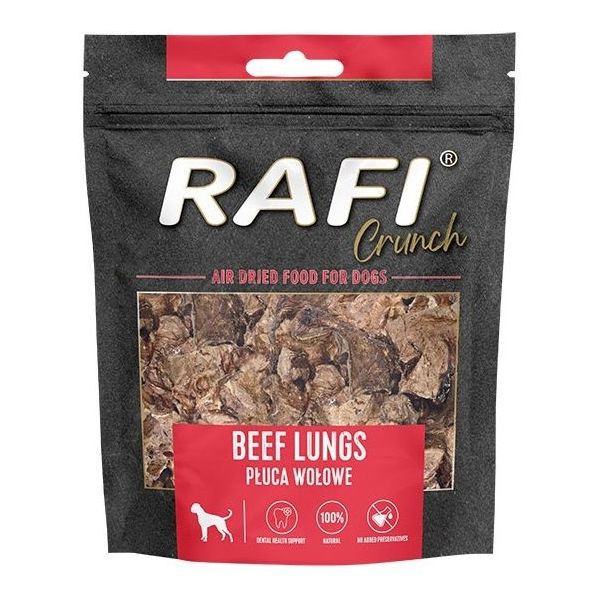 Suszone płuca wołowe Rafi Crunch to wyjątkowo lekkie i chrupiące przysmaki do żucia o wysokiej zawartości białka (75%). Mają niską zawartość tłuszczu i są łatwo przyswajalne, dzięki czemu stanowią doskonały wybór dla psów z wrażliwym układem trawiennym. Żucie tych przysmaków pomaga również usuwać osad nazębny, jednocześnie zaspokajając instynkty łowieckie.