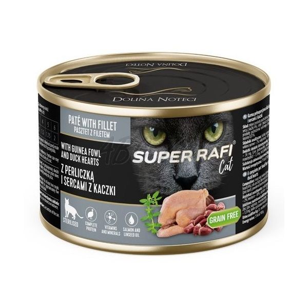 Super Rafi Cat Sterilised P&F Guinea fowl and Duck hearts 185 g