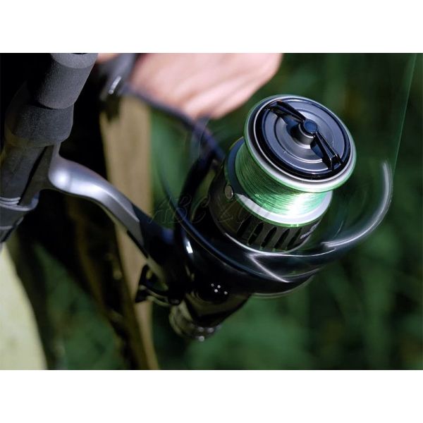 Wysokiej jakości matowa metalowa szpula została celowo zaprojektowana jako płytka, aby pomieścić odpowiednią ilość cienkiej żyłki – idealnie odpowiada to wymaganiom nowoczesnych technik łowienia. Dodatkowo szpula wyposażona jest w solidny metalowy klips do zatrzymania żyłki podczas rzutu lub po zakończeniu łowienia. Solidny kabłąk i doskonale wyprofilowany metalowy prowadnik w czarnym kolorze zwiększają ogólną trwałość kołowrotka. Czarna metalowa korbka zakończona jest mniejszym, miękkim, gumowym uchwytem, który zapewnia większą czułość podczas zwijania.