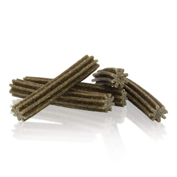 Funkcjonalne przysmaki do żucia, zaprojektowane, aby wspierać zdrowie jamy ustnej i redukować powstawanie płytki nazębnej. Połączenie rumianku i szałwii wspomaga naturalną higienę jamy ustnej, a delikatna tekstura pomaga czyścić zęby podczas żucia. Wyjątkowo smaczne, odpowiednie także dla wrażliwych psów, bez sztucznych barwników i dodatku cukru.