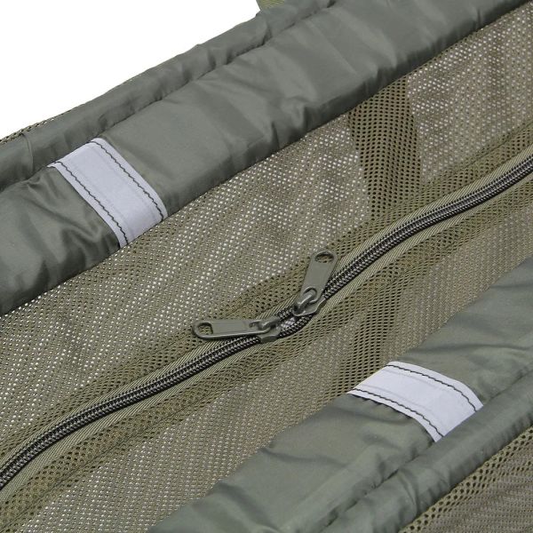 Delikatna siatka przyjazna dla ryb umożliwia szybki odpływ wody, jednocześnie chroniąc rybę podczas manipulacji. Dzięki czterem uchwytom worek można łatwo przenosić jedną lub dwiema osobami, a odblaskowe paski zapewniają widoczność nawet przy słabym oświetleniu. Do wygodnego ważenia służą dwa solidne paski, a cały worek można łatwo schować do praktycznego pokrowca transportowego, który jest częścią zestawu.