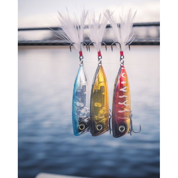 Nie ma nic bardziej ekscytującego niż moment, gdy drapieżnik wyskakuje na powierzchnię i atakuje Twoją przynętę – a World Pop w tym aspekcie na pewno nie zawiedzie. Jest niezwykle wszechstronna: możesz prowadzić ją delikatnym, wijącym ruchem „Walk the dog” za pomocą drobnych, regularnych pociągnięć. Jeśli jednak chcesz wywołać większy zamęt i jeszcze bardziej sprowokować drapieżniki, zastosuj szybkie i zdecydowane szarpnięcie, które stworzy silny efekt „pop”, poruszy dużą ilość wody i wywoła u drapieżników gwałtowne ataki. Dodatkowo World Pop wyposażony jest w technologie FLASH BOOST i SCALE BOOST, które maksymalizują wizualne przyciąganie.