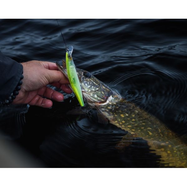 Bantam World Minnow to niezwykle wszechstronny wobler, odpowiedni do szerokiego zakresu technik prowadzenia. Przy równomiernym zwijaniu pracuje agresywnym, kołyszącym ruchem o wąskim wzorze. Gdy zatrzymasz przynętę i dodasz szarpnięcia, wobler przechodzi w wyraźną, agresywną akcję ślizgową, która doskonale imituje zranioną lub przestraszoną rybkę. Dzięki technologii JET BOOST z ruchomym ciężarkiem zaskoczy Cię odległością i precyzją rzutów. FLASH BOOST zwiększa atrakcyjność wizualną nawet wtedy, gdy przynęta stoi w miejscu, a 3D holograficzna folia SCALE BOOST tworzy niezwykle realistyczny wzór łusek, który wyróżnia się szczególnie podczas zatrzymania woblera.
