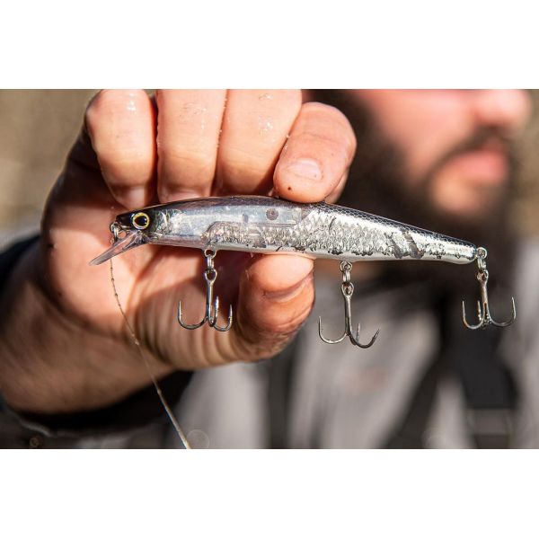 Bantam World Minnow to niezwykle wszechstronny wobler, odpowiedni do szerokiego zakresu technik prowadzenia. Przy równomiernym zwijaniu pracuje agresywnym, kołyszącym ruchem o wąskim wzorze. Gdy zatrzymasz przynętę i dodasz szarpnięcia, wobler przechodzi w wyraźną, agresywną akcję ślizgową, która doskonale imituje zranioną lub przestraszoną rybkę. Dzięki technologii JET BOOST z ruchomym ciężarkiem zaskoczy Cię odległością i precyzją rzutów. FLASH BOOST zwiększa atrakcyjność wizualną nawet wtedy, gdy przynęta stoi w miejscu, a 3D holograficzna folia SCALE BOOST tworzy niezwykle realistyczny wzór łusek, który wyróżnia się szczególnie podczas zatrzymania woblera.