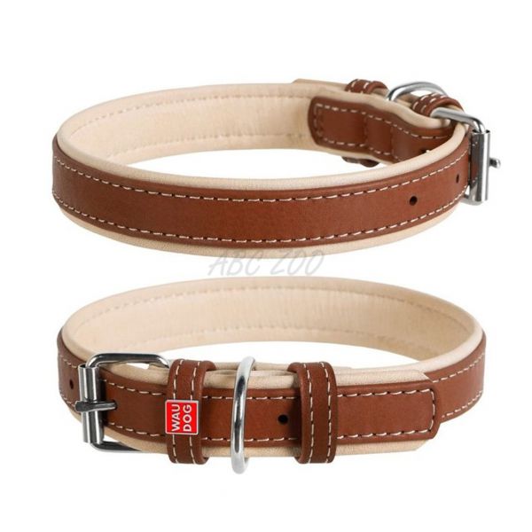 Skórzana obroża dla psa - 38- 49cm, 25mm, brązowo-beżowa