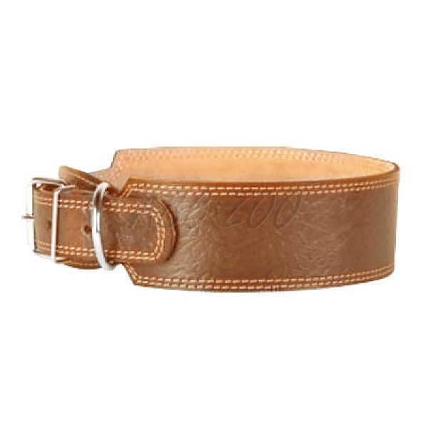 Sporządzona ze skóry dobrej jakości. Wewnętrzna część obroży wykonana jest z miękkiej skóry, dla tych psów, które mają czułą skórę. Brązowa obroża z pomarańczowymi przeszyciami i beżowym tłem.