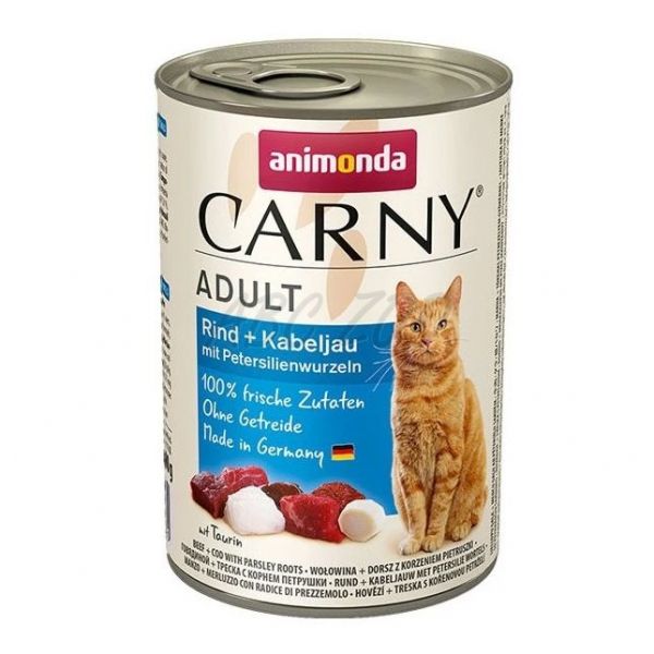 Konserwa mięsna dla dorosłych kotów ANIMONDA CARNY z wołowiną, dorszem i pietruszką. Szczegółowy opis