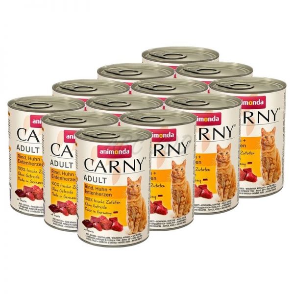 CARNY ADULT karma z wołowiny i kurczaka + kacze serca - 12 x 400g