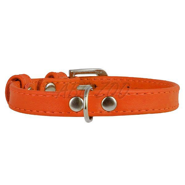 Atrakcyjna skórzana obroża w kolorze pomarańczowym. Odpowiednia dla pśów o wrażliwej skórze lub z alergią na nylon. Szczegółowy opis