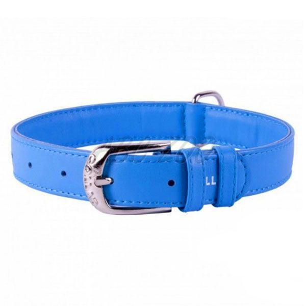 Gładka skórzana obroża, niebieska 30-39 cm, 20 mm