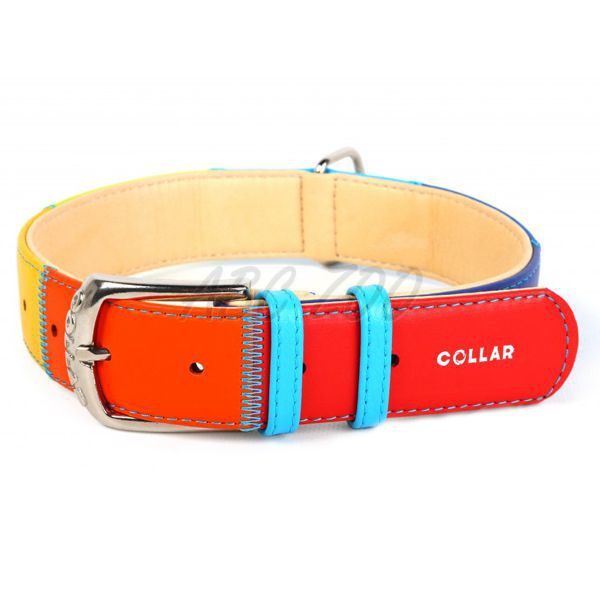 Gładka skórzana obroża, tęcza, 46-60cm, 35mm