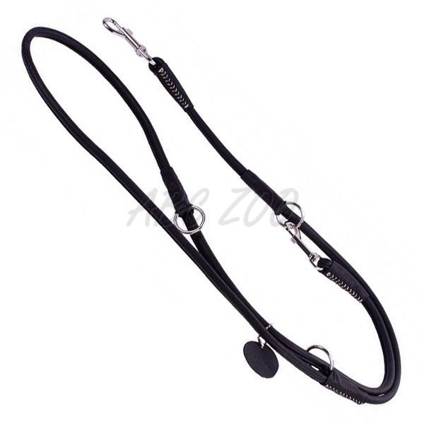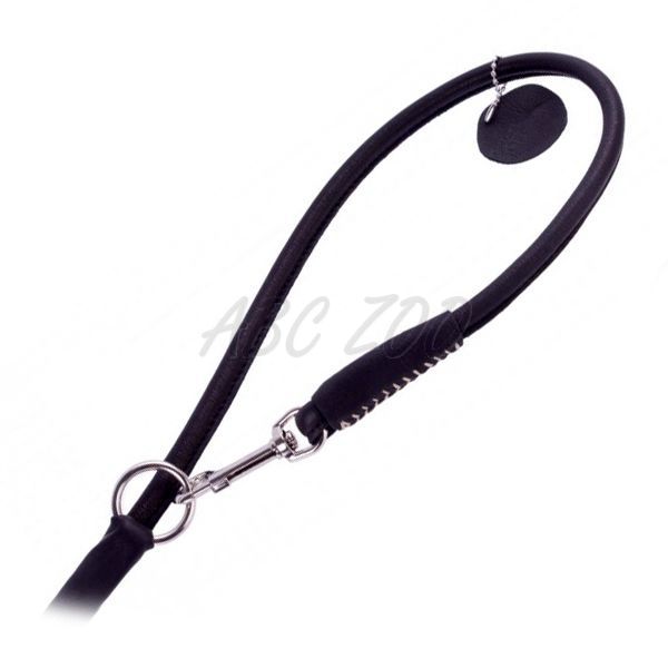 Ręcznie szyta, okrągła smycz w kolorze czarnym. Wyoknana ze skóry naturalnej, ma możliwość ustawienia 3 różnych długości. Szczegółowy opis