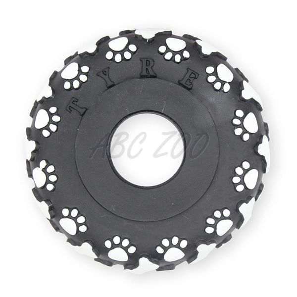 Piszcząca opona z motywem łapek i kostek, wykonana z miękkiego materiału (winylu) - zabawka dla psa. Szczegółowy opis