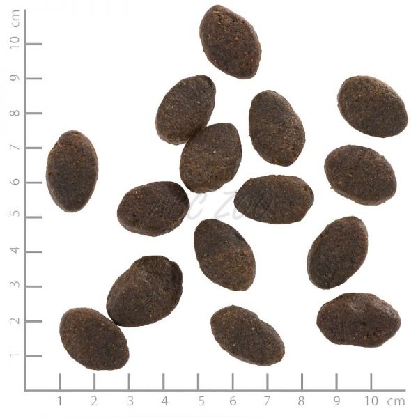 Karma NIE ZAWIERA zbóż, glutenu, przetworzonego cukru, polepszaczy smaku, soi, sztucznych barwników ani konserwantów.