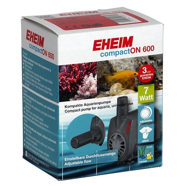 Pompy zanurzalne Eheim compactON są następcami pomp Eheim compact i compact +. Charakteryzują się wysoką wydajnością, energooszczędnością i są w pełni zanurzalne. Pompę można zamocować za pomocą dużych przyssawek znajdujących się w opakowaniu. Przepływ wody można regulować. Pompa jest dostarczana z akcesoriami.