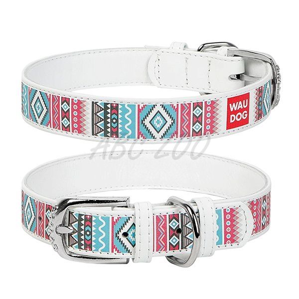 Skórzana obroża WAUDOG Ethno - biała 3,5 cm x 46 - 60 cm
