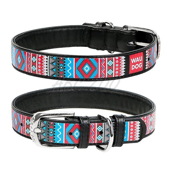 Skórzana obroża WAUDOG Ethno - czarna 1,5 cm x 27 - 36 cm