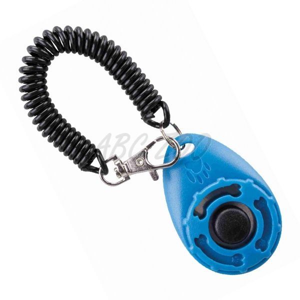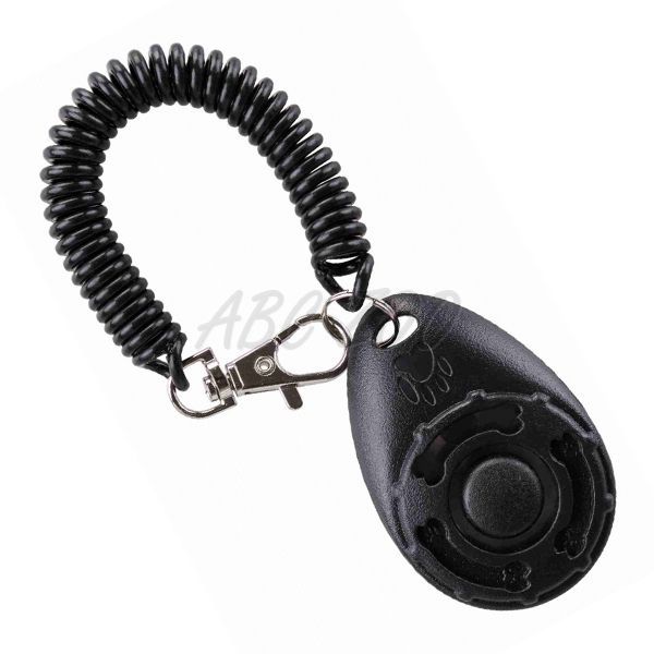 Kliker dla optymalnego trenigu i hodowli psów, ze spiralnym sznurkiem i karabińczykiem. Szczegółowy opis