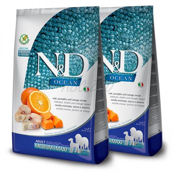 Farmina N&D dog OCEAN Adult Medium & Maxi Pumpkin, Codfish and Orange 2 x 12 kg