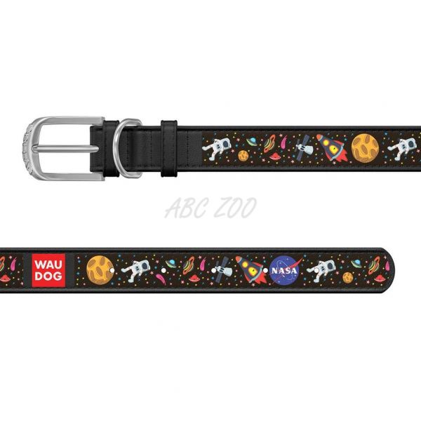 Skórzana obroża dla psa z nowej kolekcji, z nadrukiem NASA. Szczegółowy opis