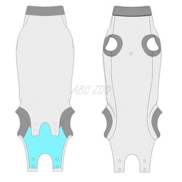 wnętrze w tylnej części jest w kolorze jasnoniebieskim, dzięki czemu można kontrolować wyciek wydzieliny z rany, a w razie potrzeby między ubranie a ciało zwierzęcia można włożyć wacik lub woreczek z lodem