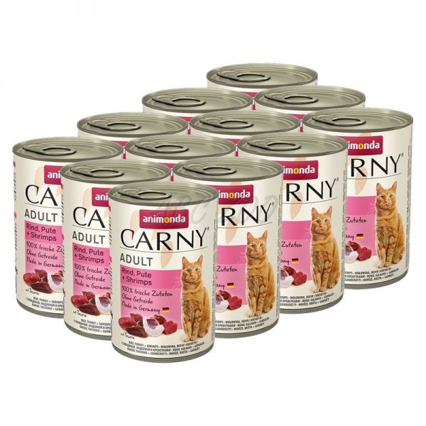 Konserwa CARNY ADULT z wołowiną, mięsem z indyka i krewetkami 12 x 400 g