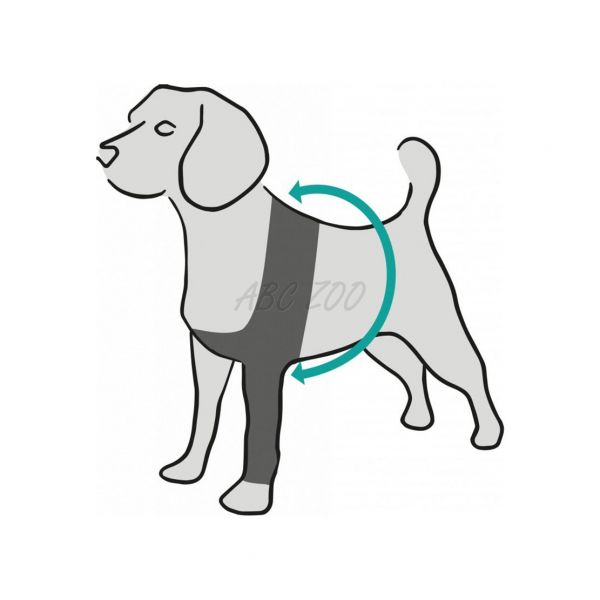 zapięcie wokół klatki piersiowej ułatwia zakładanie osłony, a dodatkowo pies nie może jej samodzielnie zdjąć
