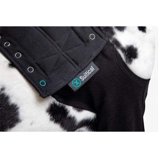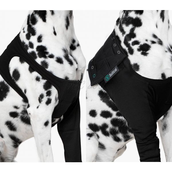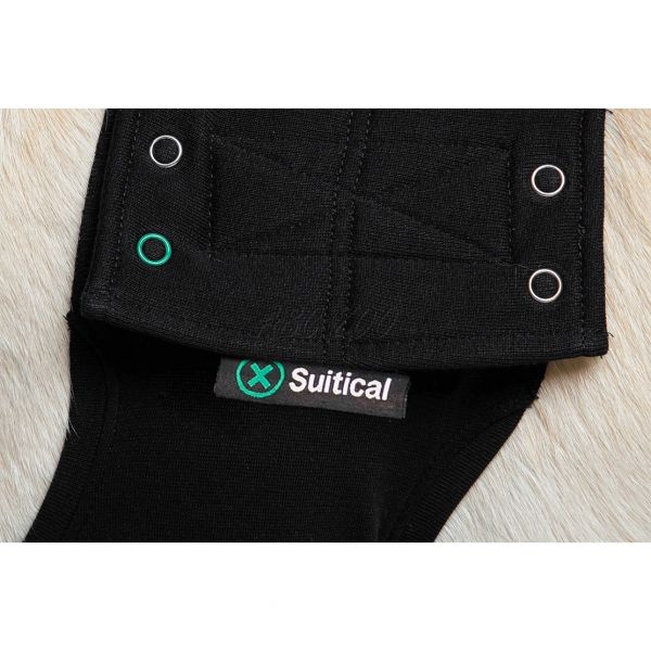 zapięcie wokół klatki piersiowej ułatwia zakładanie osłony, a dodatkowo pies nie może jej samodzielnie zdjąć