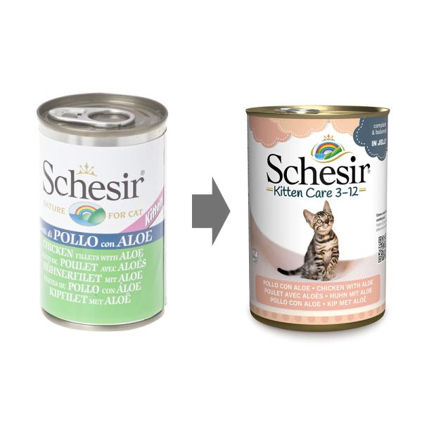 Schesir konserwa dla kociąt z kurczakiem i aloe vera w galarecie.
