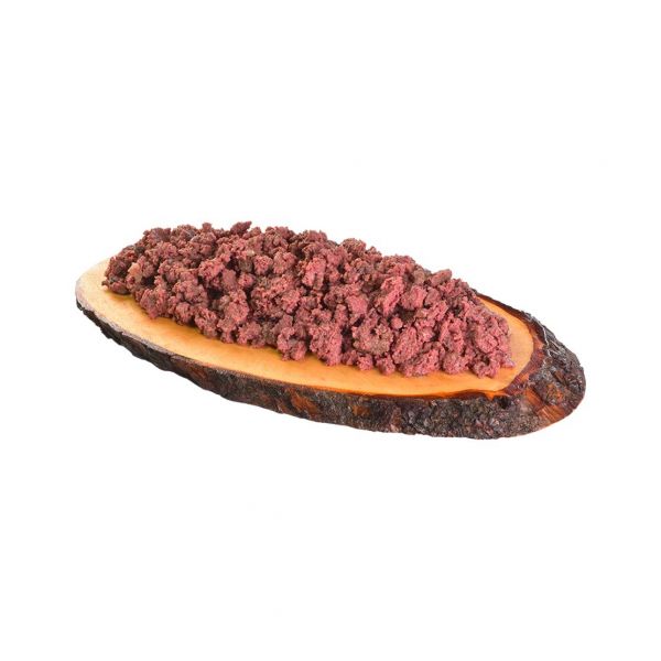 Składniki: 85% mięso i organy (59% indyk, 26% dzik), 9% bulion, 4% dzikiej róży, 1% minerały, 1% olej lniany
