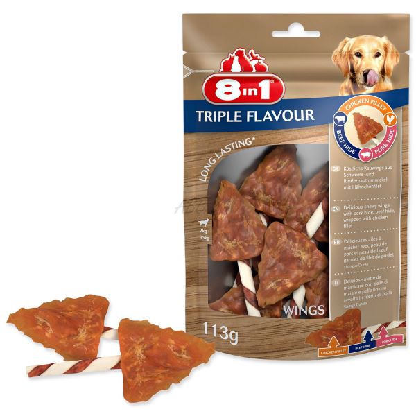 Skład: mięso i produkty uboczne pochodzenia zwierzęcego (48% pierś kurczaka, 20% skóra wieprzowa, 15% skóra wołowa), produkty pochodzenia roślinnego, minerałySkład analityczny: białko 68%, tłuszcz 2%, popiół 3%, włókno 1%, wilgotność 18%