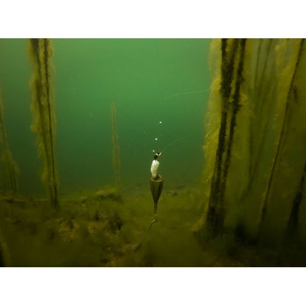 Pływak ma także wgłębienie antysplątaniowe, w które można włożyć mały kawałek zwiniętej pianki rozpuszczalnej. Można w nią potem wbić haczyk, co pomoże uniknąć zaplątania się przyponu podczas rzutu i w czasie, gdy pływak będzie podnosił się w wodzie.